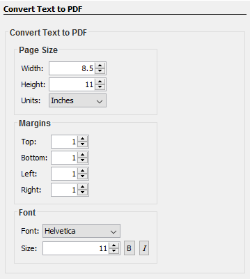 This job is used to convert text documents to PDF. The basic wizard options allow to define the formatting of the new PDF document: