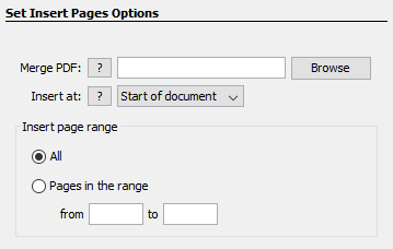 Use this section to specify the pages from the Merge PDF to insert into the PDF documents being processed.