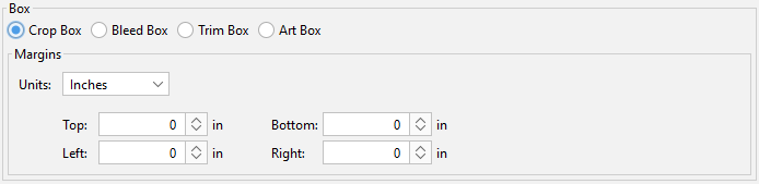 Einheiten- Wählen Sie die Maßeinheit für die Schnittränder in Zoll, Punkten, Zentimetern oder Millimetern