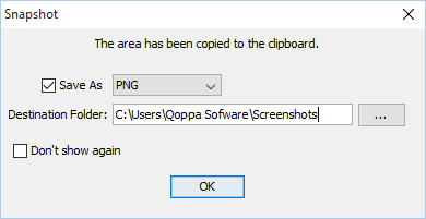 Lorsque le bouton de la souris est relâché, une image sera créée à partir de la zone sélectionnée. L'image est toujours copiée dans le presse-papiers du système et une boîte de dialogue s'affichera avec des options supplémentaires pour l'image créée.