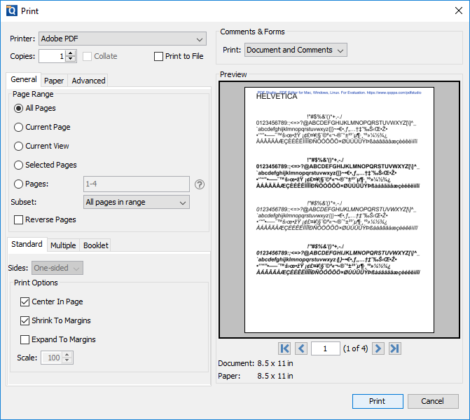 PDF documents can be printed from within PDF Studio Viewer. By default, PDF Studio Viewer will print using our custom dialog which provides additional advanced printing options as well as a live print preview. Start the print dialog by clicking on the